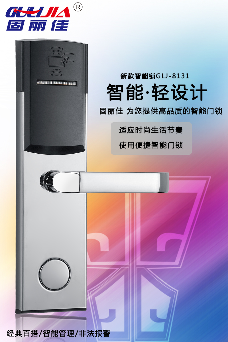 該款GLJ-8131不銹鋼酒店鎖,表面亮鉻處理,美觀耐用,永不褪色!有著經(jīng)典百搭、智能管理、智能防盜等多種特點。美麗的外觀及精美的設計讓您的酒店更加高大上,給客戶留下深刻印象。固麗佳酒店鎖防盜功能升級,安全,高檔,豪華,為您提供高品質(zhì)的智能門鎖!